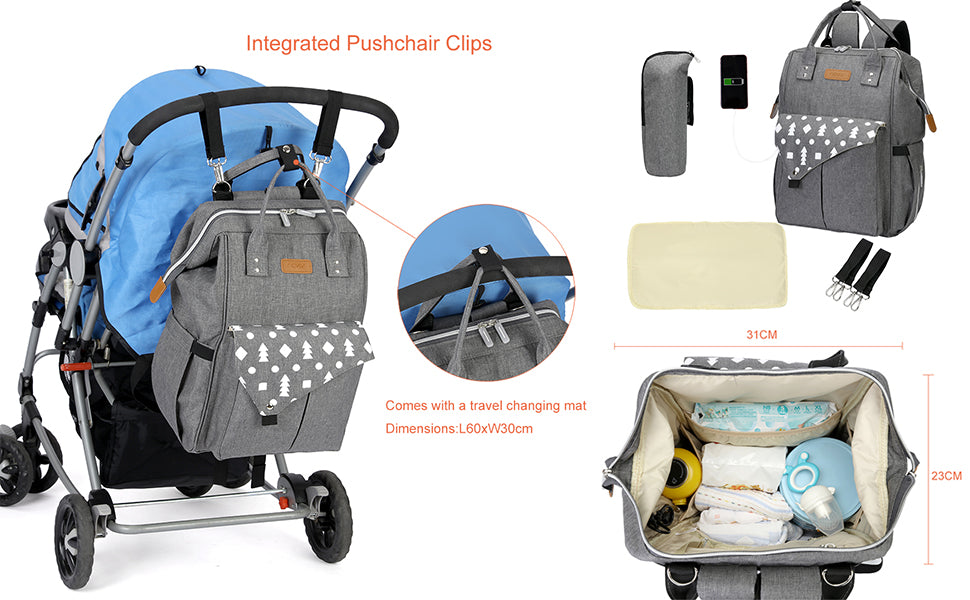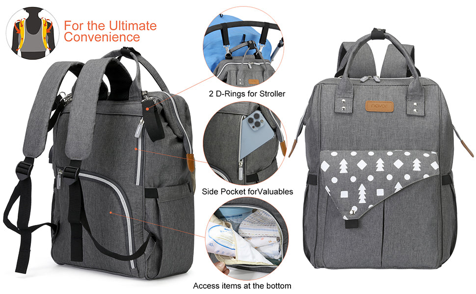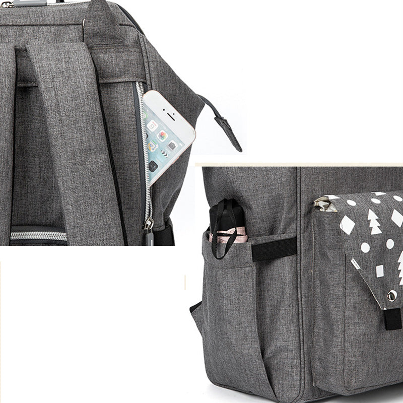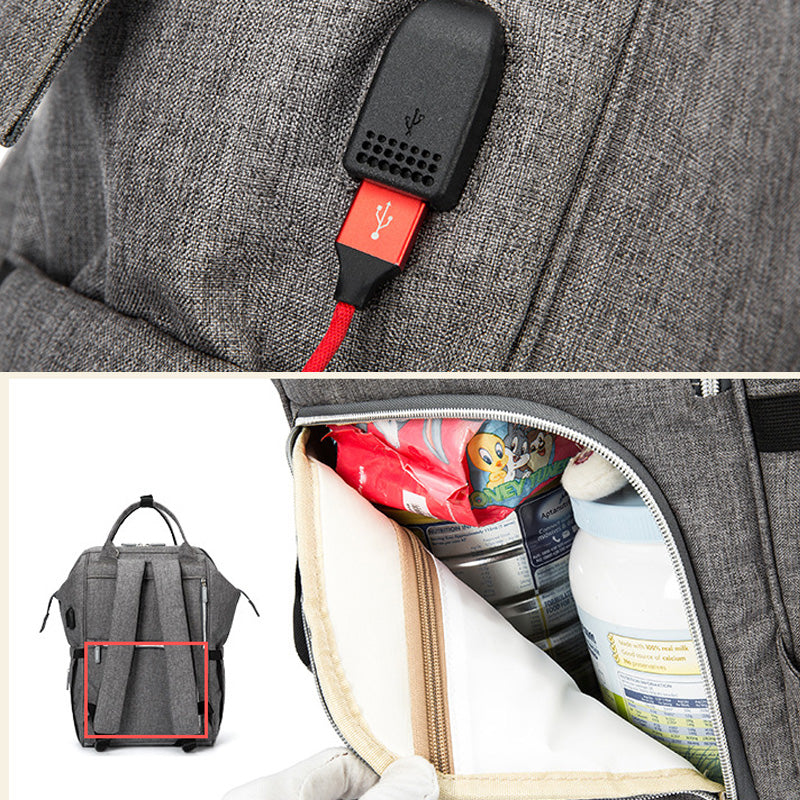 حقيبة ظهر أنيقة وعملية صممت خصيصًا للأمهات العصريات. تتميز بسعة كبيرة وجيوب متعددة تساعدك على تنظيم كل مستلزمات طفلك بكل سهولة، من الحفاضات والرضّاعات إلى الملابس وأغراضك الشخصية.